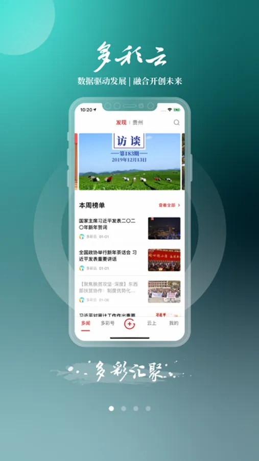 “多彩云”努力实现资源汇聚、数据大脑、版权服务、协同指挥、稿件协同、传播感知、服务群众等功能应用,自2018年上半年启动建设以来,已汇聚全省各级宣传文化单位和各级融媒体中心发布的内容数据160万余条,实现省直宣传文化单位、全省各市(州)宣传文化单位、全省县级融媒体中心全覆盖、全接入,成为贵州宣传思想文化系统的“中央厨房”和县级融媒体中心省级统一技术平台,取得了“两创新、两率先”阶段性成果(创新自主研发“多彩云”大数据平台、创新建立县级融媒体中心省级技术平台版权机制,率先实现省、市、县三级宣传思想文化系统数据聚合联通、率先实现全省88个县级融媒体中心全部接入)。