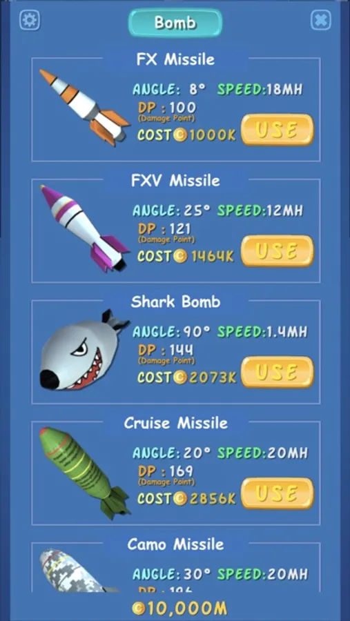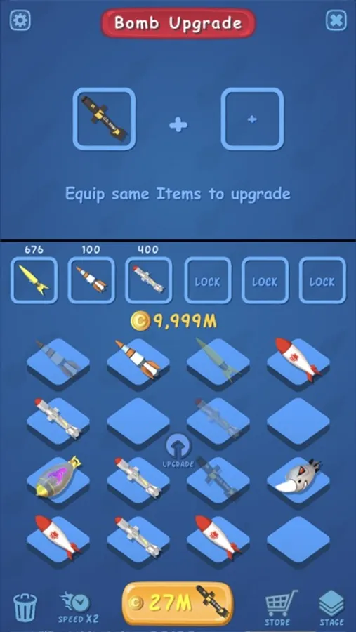 There are 28 kinds of bombs in total and there is an upgrade system from step 23 to improve the performance of bombs.