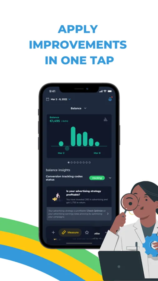 • Improve your Google Ads, Facebook Ads, Tik Tok Ads, Instagram Ads and Microsoft Ads with personalized ready-to-use tips to boost your ads optimization and performance.