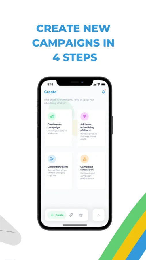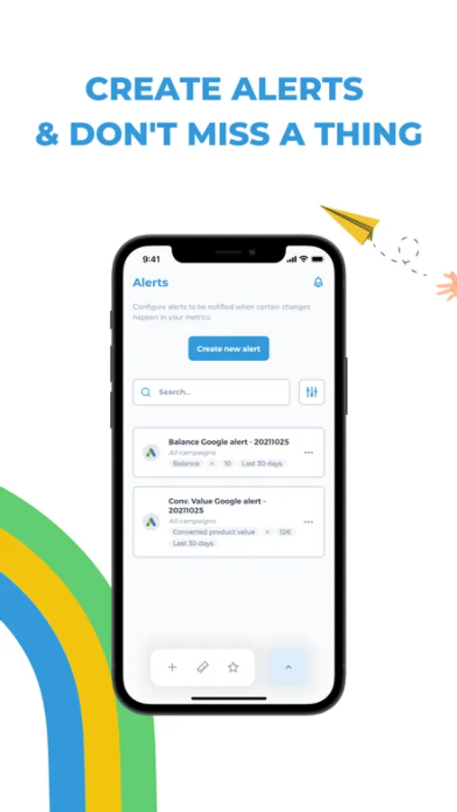 • Program manual alerts so you receive a notification when your ads metrics perform in a concrete way. Relax, disconnect and get notified when you choose to.