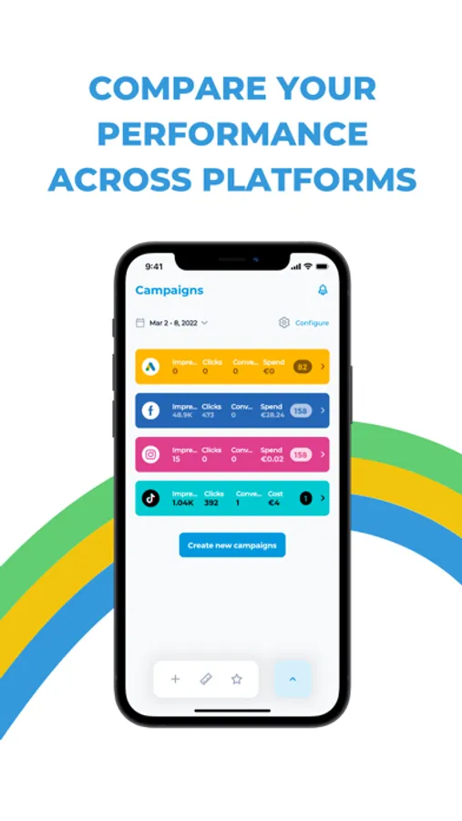 • Compare your performance across advertising platforms and balance your budget.