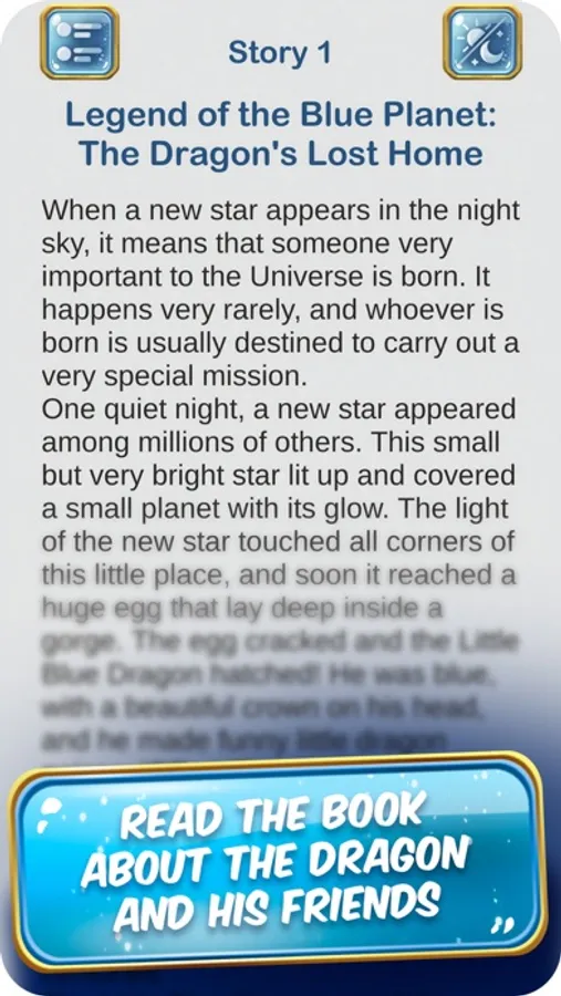 When it's time to go to bed, you can easily play Little Blue Dragon Lullaby through your app. It’s a unique song written especially for this project by professional artists from Los Angeles. It’s a hit on YouTube!