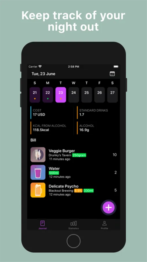 - Start tracking your drinks. The new calendar view allows you to organize your expenses per day.