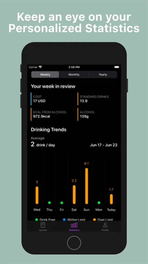 - Weekly, monthly and yearly insights on how much you drink and spend.