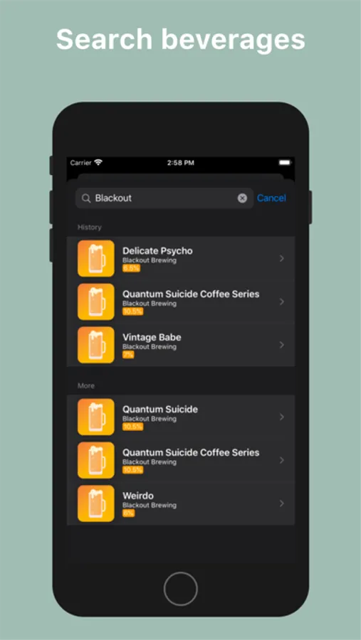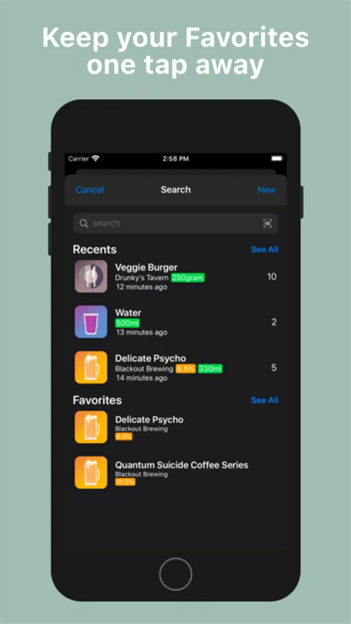 - Always drinking the same thing? Then tracking is even easier! Find your beverages on your most recents section and add them all over again.
