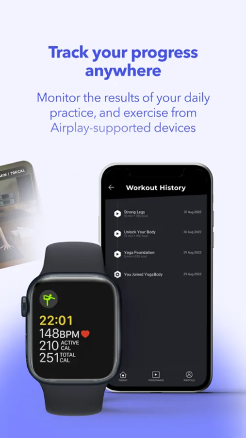 Watch our High-Quality videos on Airplay-supported devices, and follow your workouts’ progress from your iPhone.