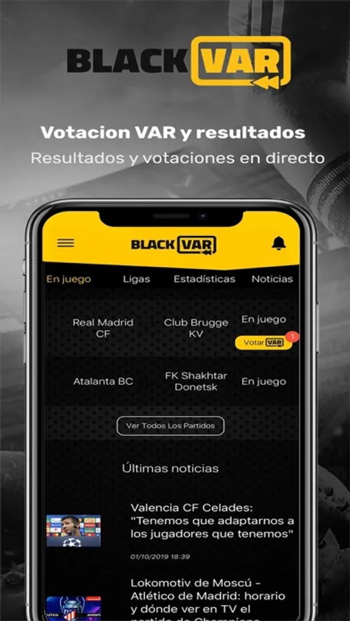 VAR oficial. A través de la aplicación recibirás notificaciones sobre goles, comienzo