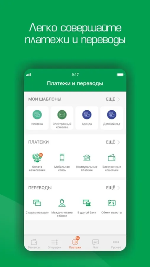 Переводы и платежи: