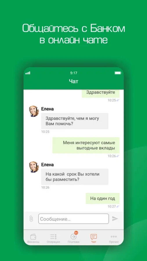 - общаться с банком в онлайн чате;