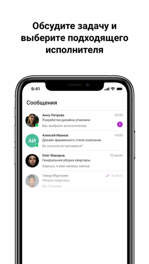 В UMEU вы можете предложить собственную цену, исходя из рекомендаций сервиса. Посмотреть профили откликнувшихся исполнителей и принять предложение одного из них по рейтингу и отзывам. Все диалоги можно вести через чат.