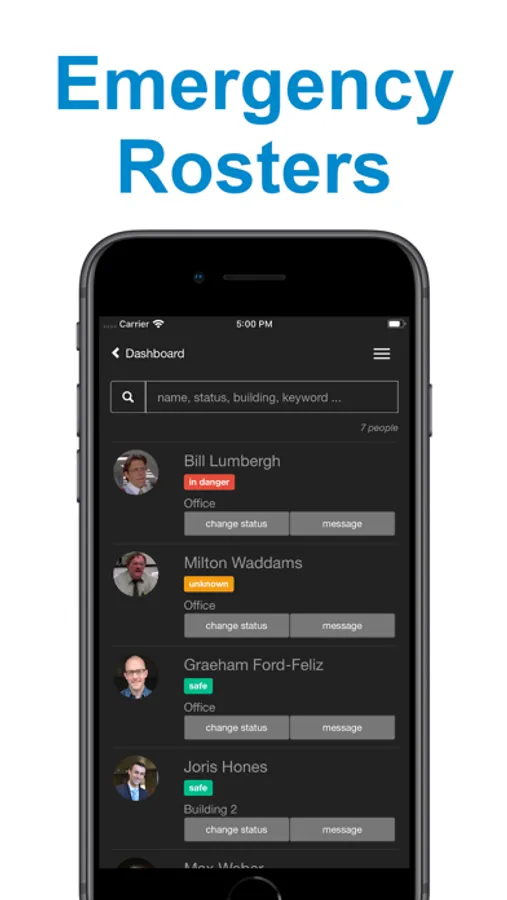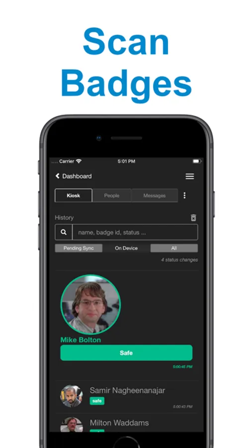- If someone does not have their phone or badge, simply mark them as safe inside the app with the push of a button.