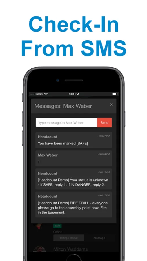 - Employees can reply to a text/email message to mark themselves 'safe' or 'in danger'