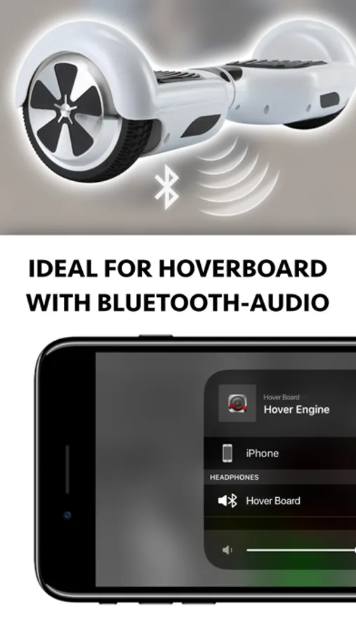 Hover Engine works as background app while iPhone is asleep, safely in your pocket. It detects your speed with iPhone’s motion sensors and then generates matching engine sounds automatically. Ideal for use with bluetooth-audio hoverboards, so the sounds really come from your board. With normal, non-audio hoverboards, the iPhone’s powerful internal speaker can be used.