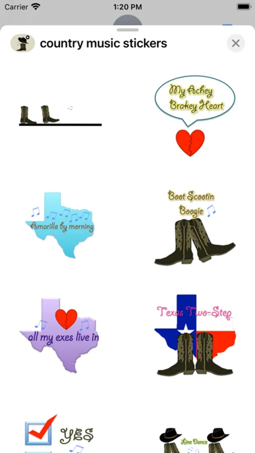 Have a little bit of fun with friends and family sharing country music memories via stickers.