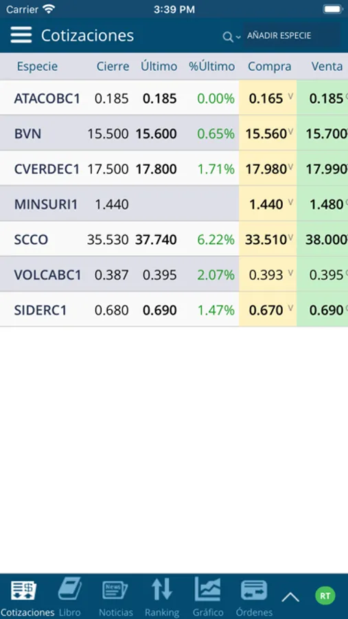 Podrás ver en tiempo real las cotizaciones de los valores inscritos en la Bolsa de Valores de Lima, las mejores ofertas, los volúmenes y cantidad de acciones negociadas, los gráficos de cotizaciones por acción.
