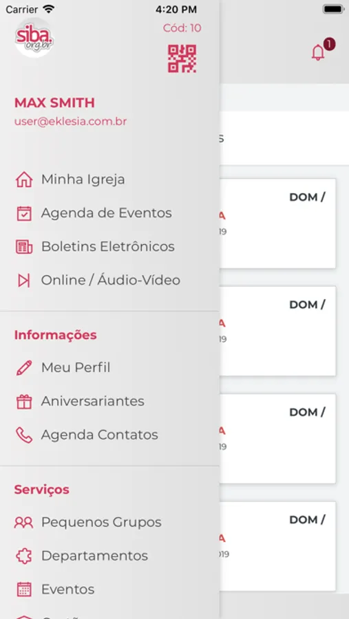 * No item "Meu Perfil" você poderá atualizar seus dados cadastrais na Igreja;