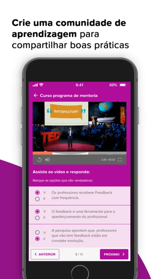 Com as soluções do Coach Virtual, cada instituição de ensino pode criar um processo único para formação continuada de seus professores. Identifique evidências a partir da observação de sala de aula, ofereça feedbacks, mentorias e coaching aos professores e crie uma rede de conhecimento para compartilhar as melhores práticas da sua escola.