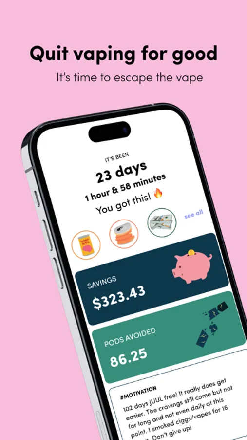 Are you ready to quit vaping? Ain't no motivation quite like saving money and, of course, your life! Kick the addiction, improve your health, and spare your wallet (cha-ching!). This app tracks the number of days your lungs are smoke-free and how much money you have saved so you can put those dollars toward something better! New shoes, perhaps? Your degree? Extra guac?