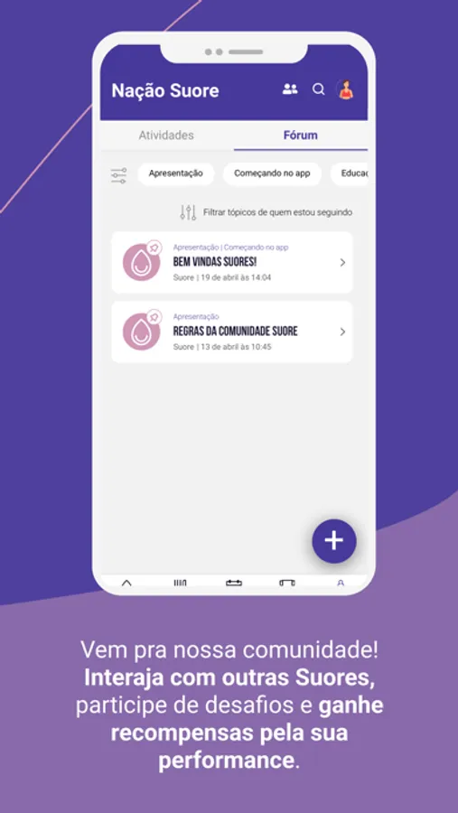 Ah, e uma Comunidade superespecial no App, feito para te acolher e permitir que você encontre e interaja com a sua turma, troque experiências, se desafie a ainda e ganhe recompensas.