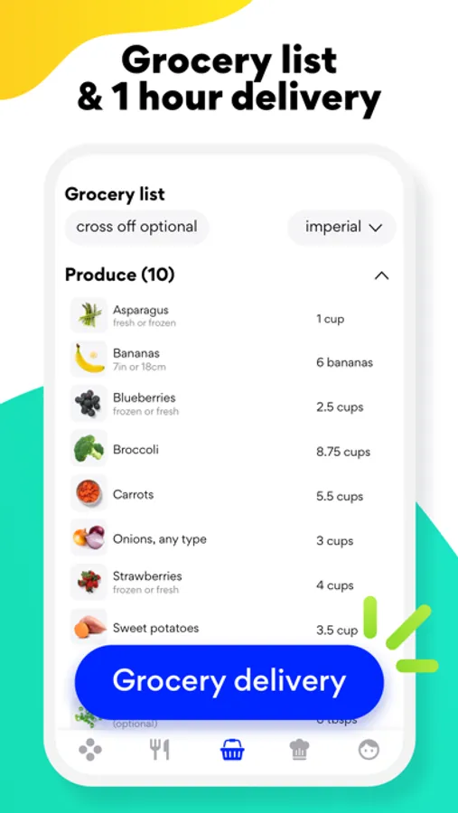 With 1 tap, the grocery list calculates all the ingredients for the week - saving you time and helping you avoid food waste. Our PRO users can also get groceries delivered in 1 hour with Instacart or Amazonfresh (where available).