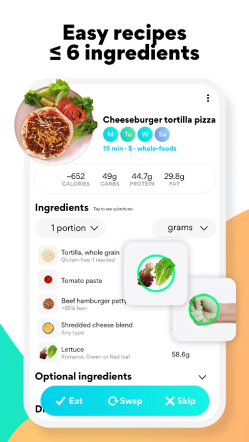 Get weekly meal plans that achieve the macronutrient targets for your lifestyle & workouts. Whether you eat vegan, vegetarian or everything, choose from hundreds of healthy recipes to try. Our simple & tasty recipes have up to 6 main ingredients to streamline meal prep. Recipes have nutrition profiles, easy substitutes, and step-by-step directions. So you can make food without cooking, or with common stuff like a stove, microwave, oven or blender.