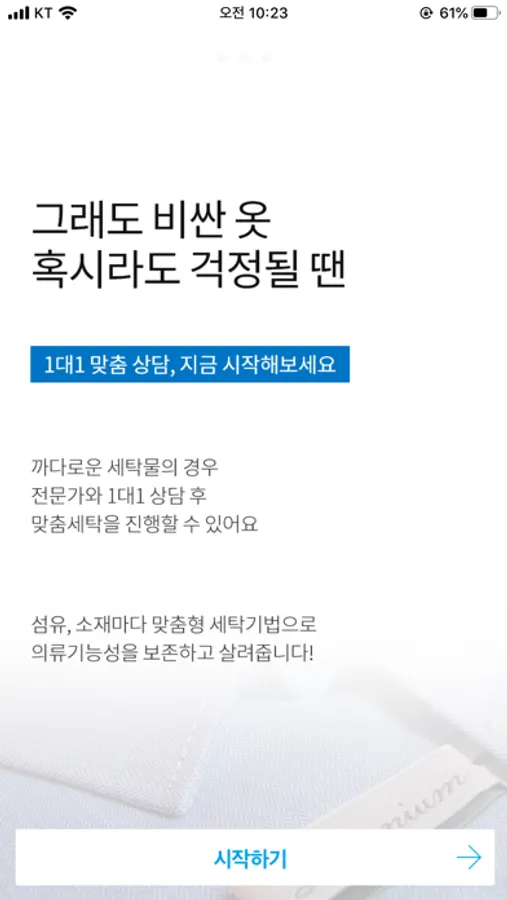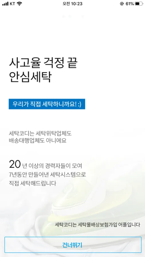 수거/세탁/배송/사후관리까지 모든 공정은 세탁코디 본사 품질 경영 시스템을 통해 이루어지며, 서비스 불만족 시 100% 재세탁/환불/AS보상 처리함을 원칙으로 합니다.