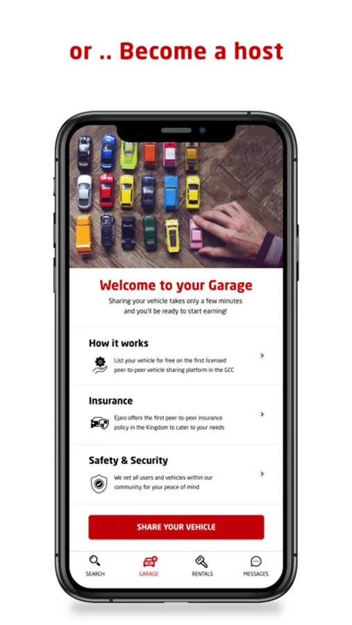 Ejaro is the first licensed peer-to-peer vehicle sharing platform in the GCC. Founded in Saudi Arabia, we connect local vehicle owners with individuals who are looking to rent vehicles whenever and wherever they want. We empower owners to earn extra income from their depreciating private vehicles (assets) by sharing it with Ejaro’s trusted community. Our services provide the ease and convenience of locating the nearest vehicles at competitive prices.