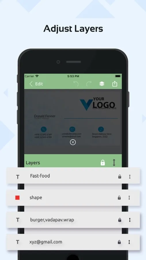 - Make use of touch gestures to adjust the size and orientation of the shapes in the visiting card.
