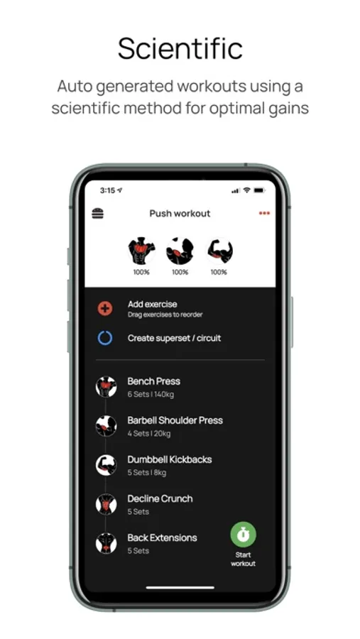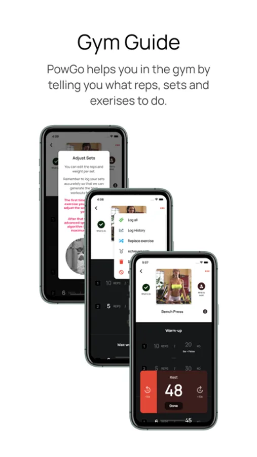 PowGo guides you though sets, reps, and weights. It uses machine learning & sports science to optimize your workouts.