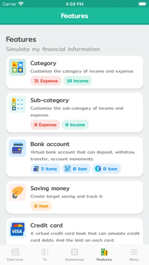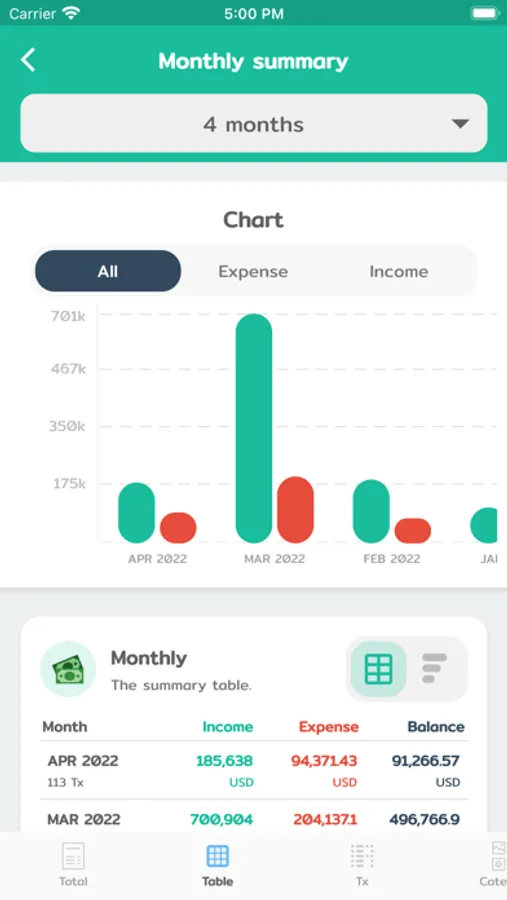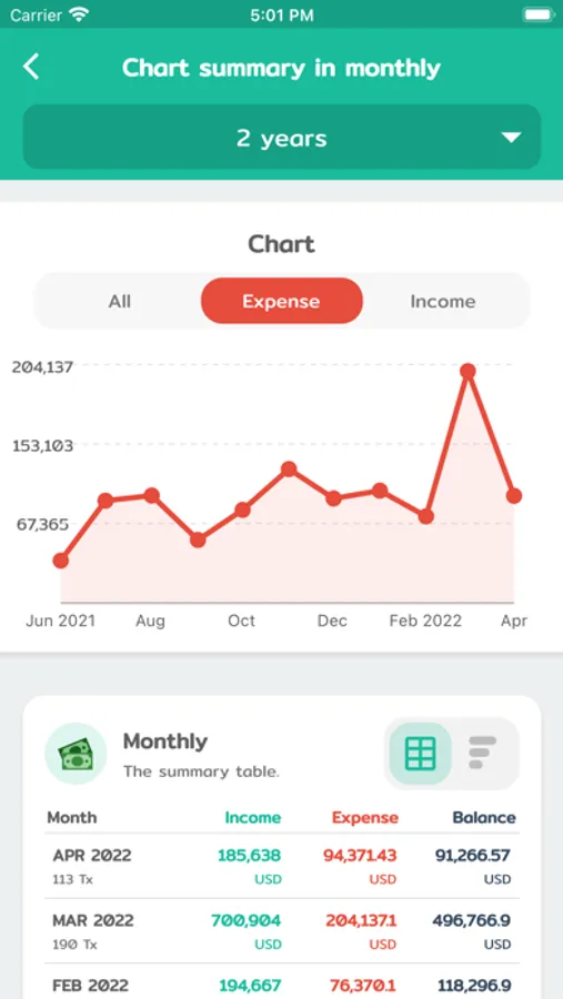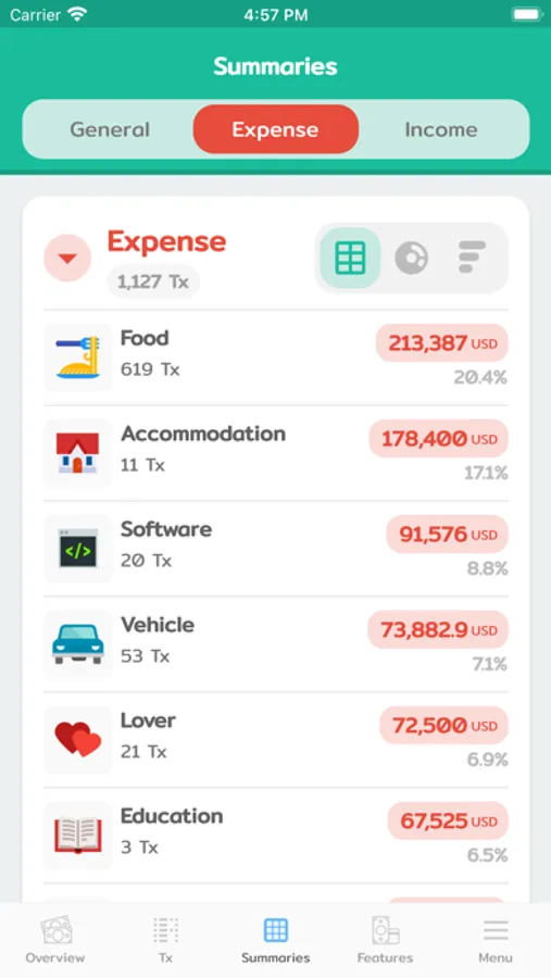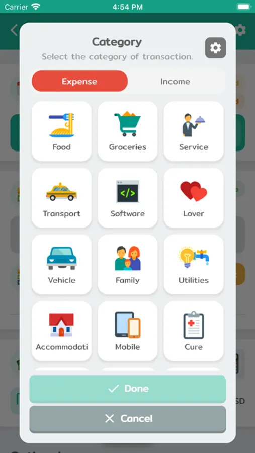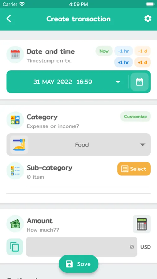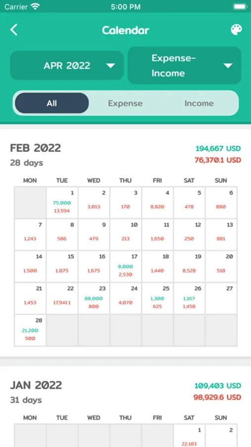 - Daily/Monthly/Yearly budget.