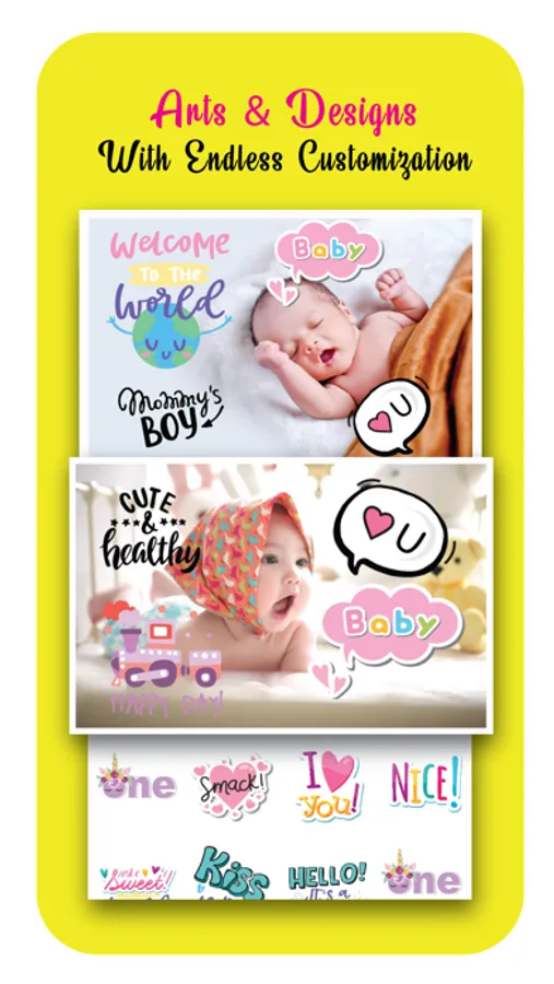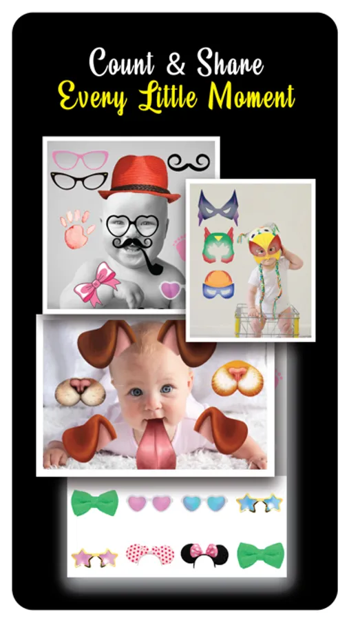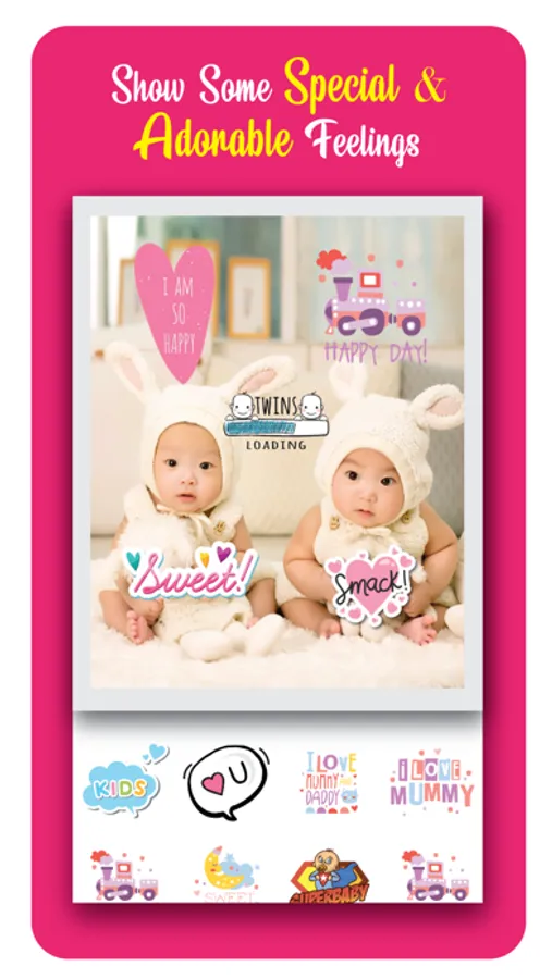 • Add multiple baby stickers to your photos