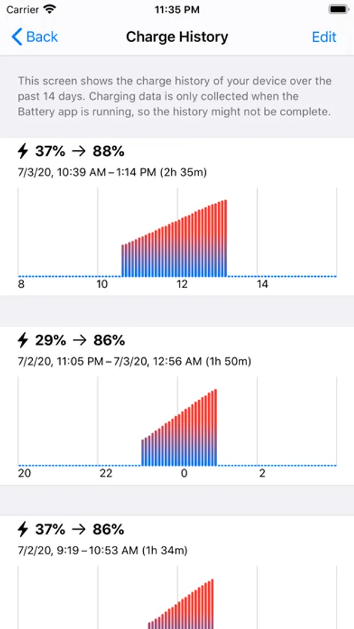 Battery Charge Alarm is an app that helps you charge your device to a specific battery level. You can set an alarm that will go off when the device is charged to the desired level. This is completely adjustable through an intuitive user interface, matching iOS design guidelines. Once you set the battery alarm, a stand-by screen is shown with a view on the current battery charge, and a dotted line showing the charge required before you will be alerted to stop charging your phone.