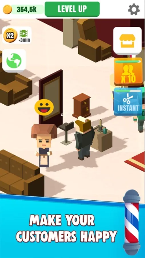 People love wacky hairstyles. Can you run an idle barber business and become the #1 idle hair tycoon?