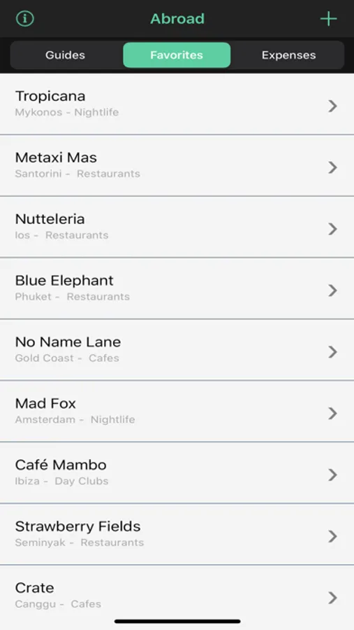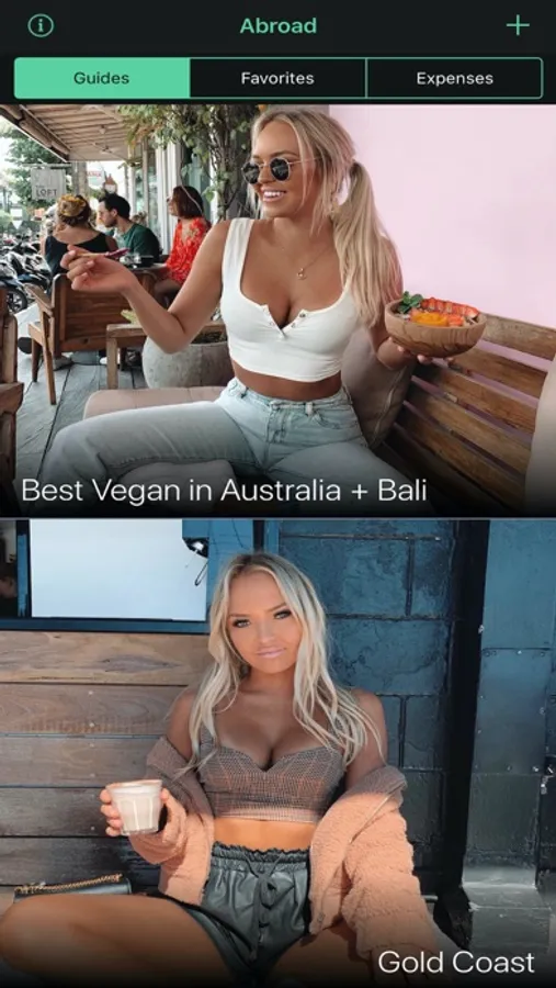 Each guide contains the best cafes, restaurants, nightlife, activities to do and tips on how to better enjoy your trip. Some guides also contain a dessert section and specific things to do in winter. Abroad also has a favourites section so you know where you’re going once you land and an expenses section to help you save for your trip!