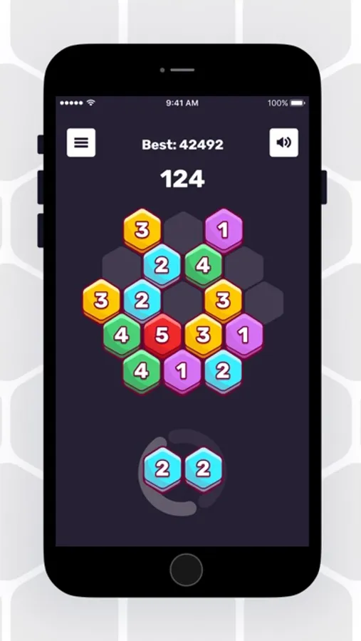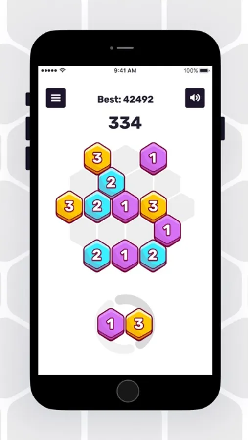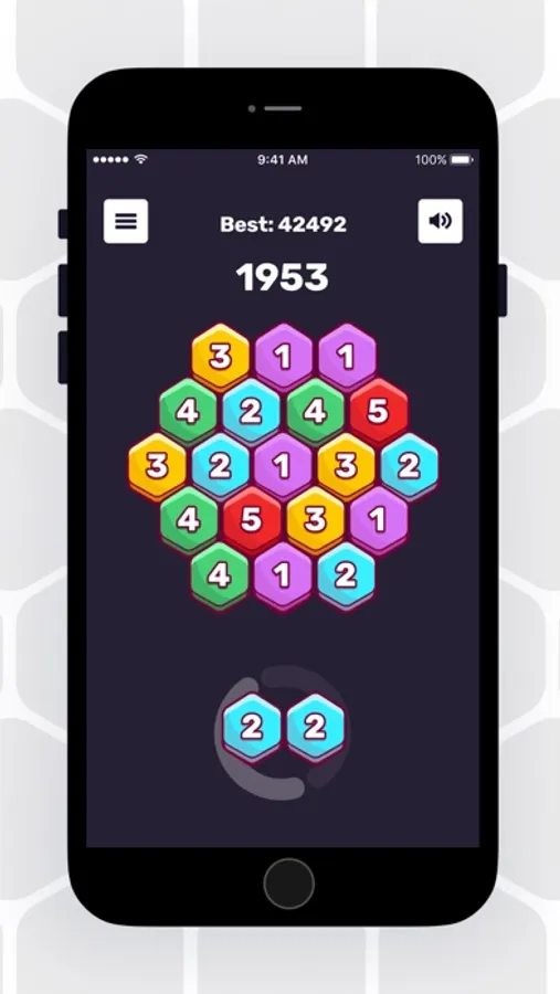 Place three or more hexa blocks with the same number and color next to each other to merge them and get score. You can also rotate blocks before placing them on the grid!
