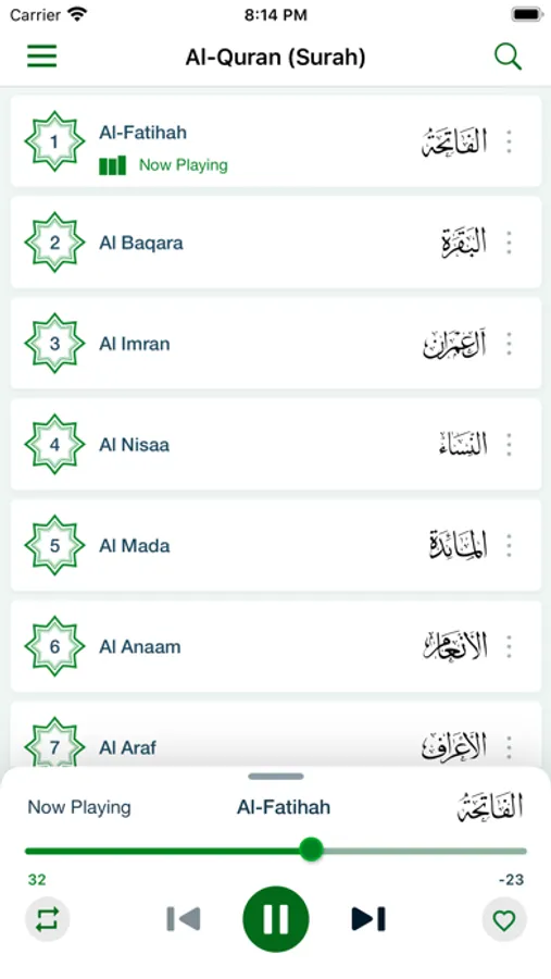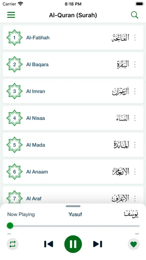 An amazing collection of High Quality surah tracks and AD-FREE app.
