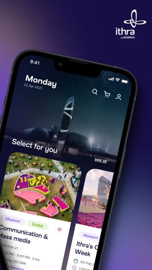 The Ithra mobile app will assist you in your journey of enrichment. Explore the most up-to-date programs offered at Ithra, and create a list of your favorites. We will help you to organize the date and time of your favorites to ensure your next visit is smooth and pleasant.
