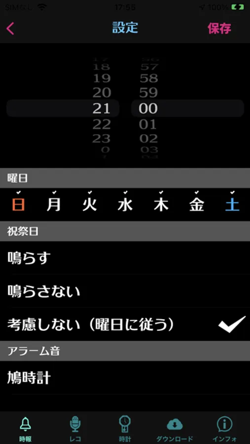 In addition to the bong sound, a cuckoo clock-like sound is also available.