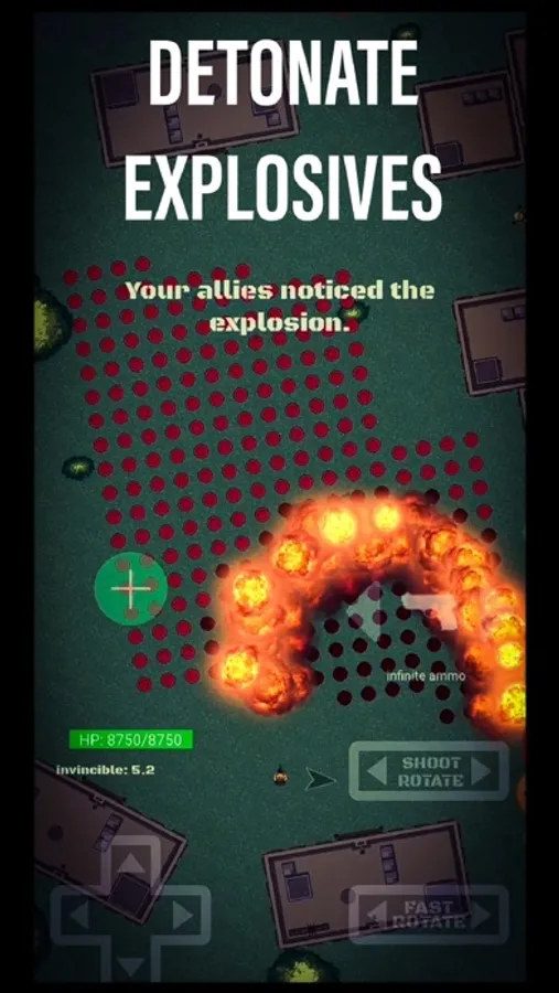 - Collect power-ups including first aid kits, ammo, short-duration invincible mode,