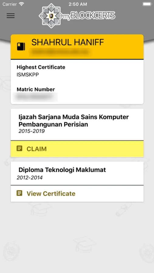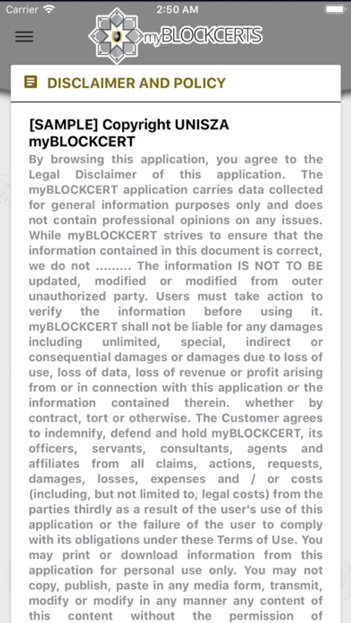 An app for UniSZA's alumni to claim their own digital certificate after convocation. This app also can be a key to employee to make sure the certificate is real by scan the QR code provided at top of the physical certificate.