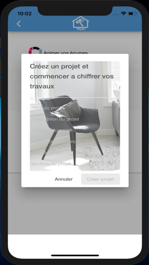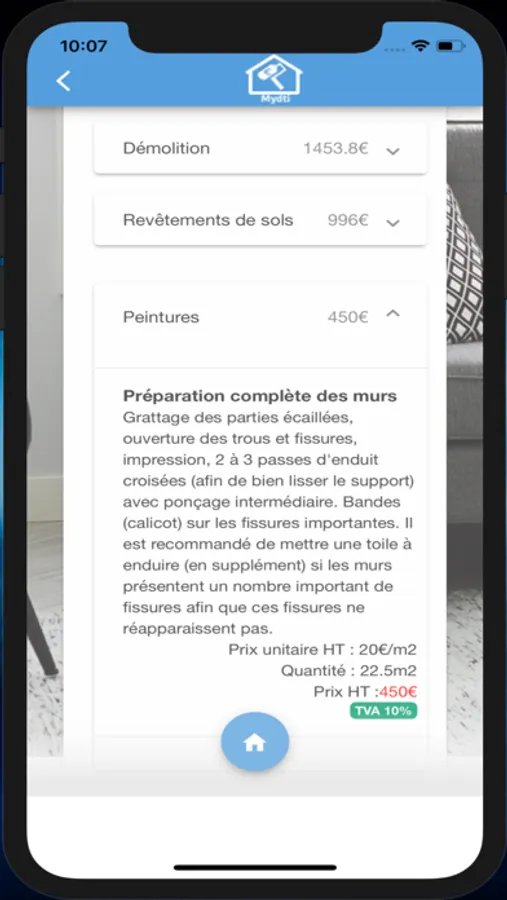 Application mobile permettant d'estimer le coût de chaque poste lors de travaux de rénovation.