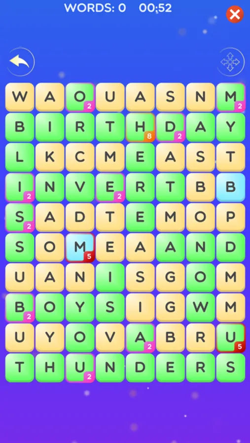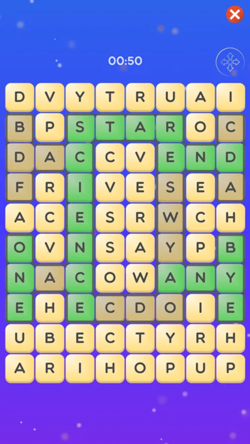A 80-letter grid is at your disposition. Your mission, should you accept it, will be to get the highest score by scrolling the letters in the grid, horizontally or vertically, to form words.