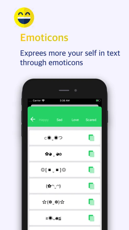 Emoticons:- We can't express everything through the letters write? So we have added some collection of emoticons text through which you can express you feeling perfectly through text.