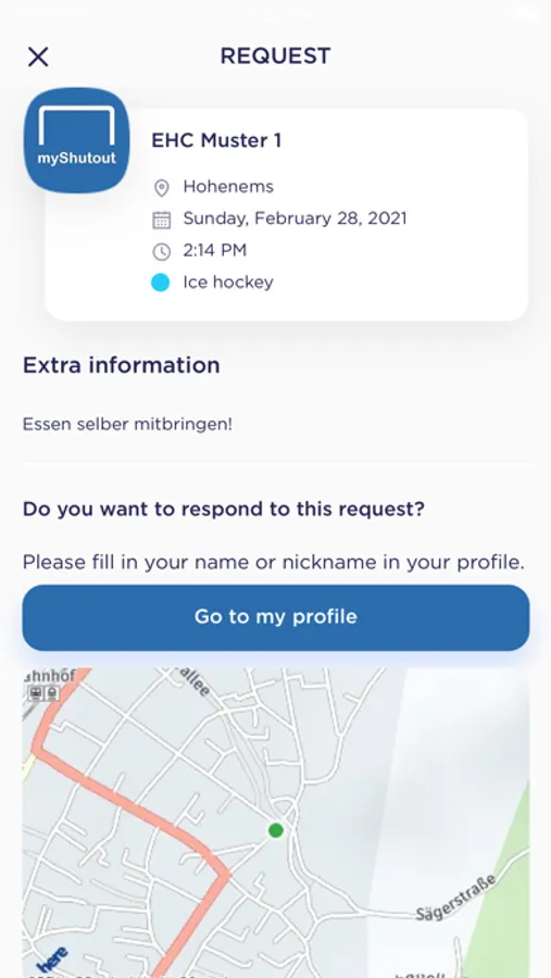 Mit myShutout können Hobby- und in Ligen spielende Vereine ihren oft kurzfristigen Bedarf an einen Ersatztorwart, schnell abdecken, ohne die Kontaktdaten dieser Torwarte kennen zu müssen.