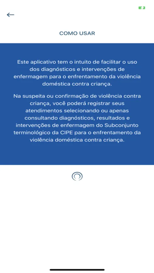 O aplicativo tem um catalogo de diagnósticos e intervenções que auxiliam um enfermeiro no diagnóstico de abusos com crianças. Além disse as intervenções auxiliam o enfermeiro no que fazer a partir do diagnostico.