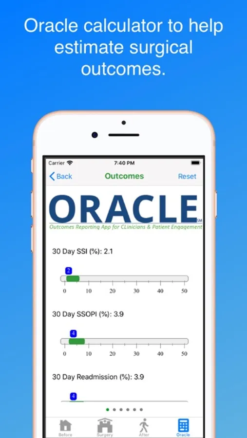 The Oracle surgical calculator provides key estimated surgical outcome risks for patients undergoing ventral hernia repairs.