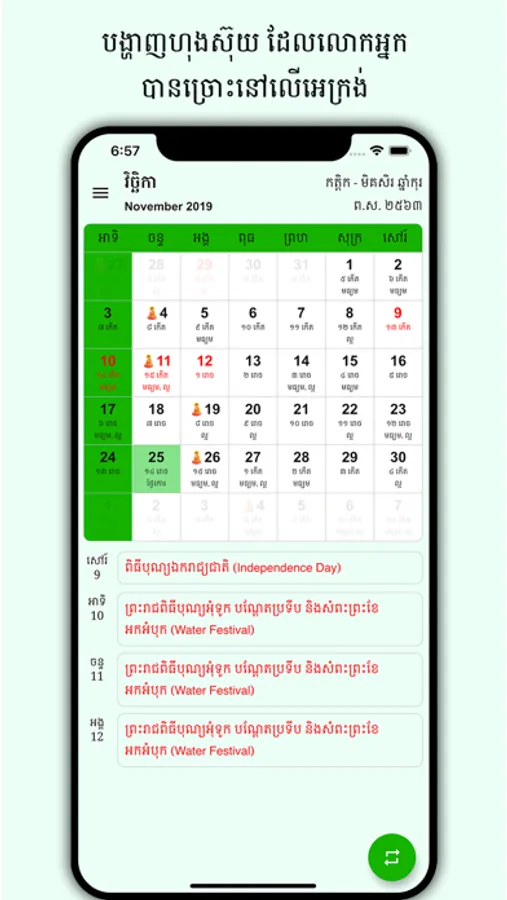 Khmer Lunar Calendar is one of calendars combine with the international calendar and Lunar Calendar following celebration and public holiday in Cambodia.