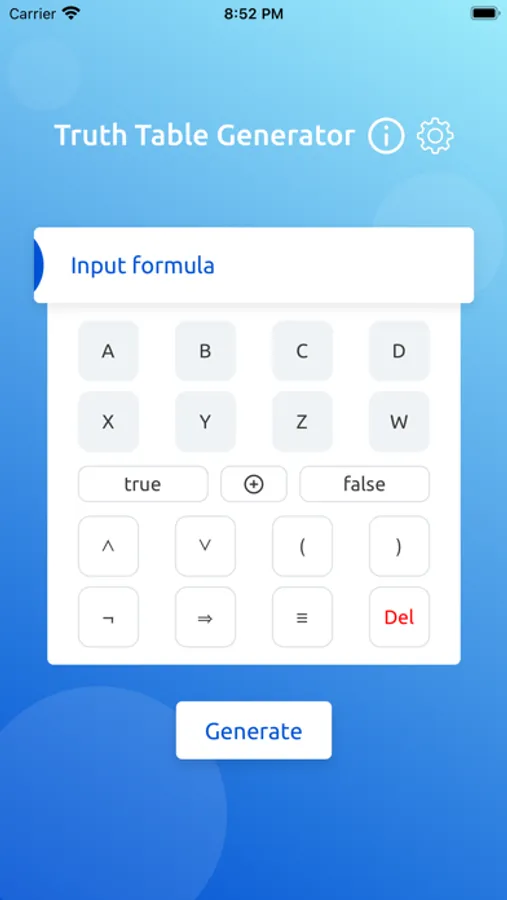 Step by step truth table generator for logical formulas. App takes input of a logical formula, and generates the truth table, and step by step breakdown of every intermediate proposition the way humans would do it.