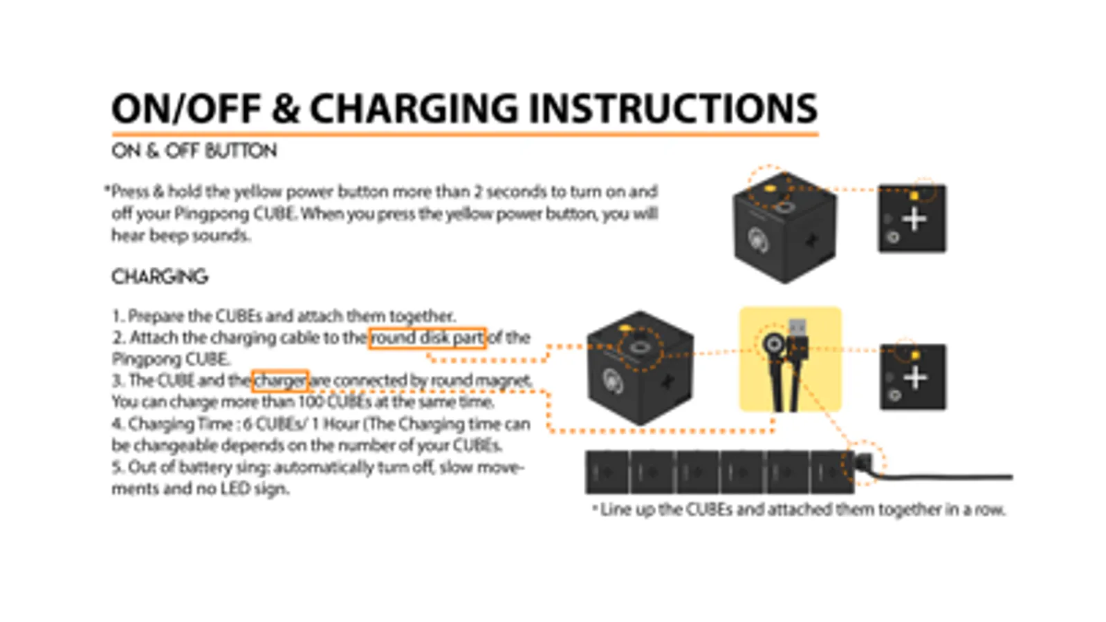 3-4.Charging Time: 6 CUBEs/hour (the charging time depends on the number of CUBEs).