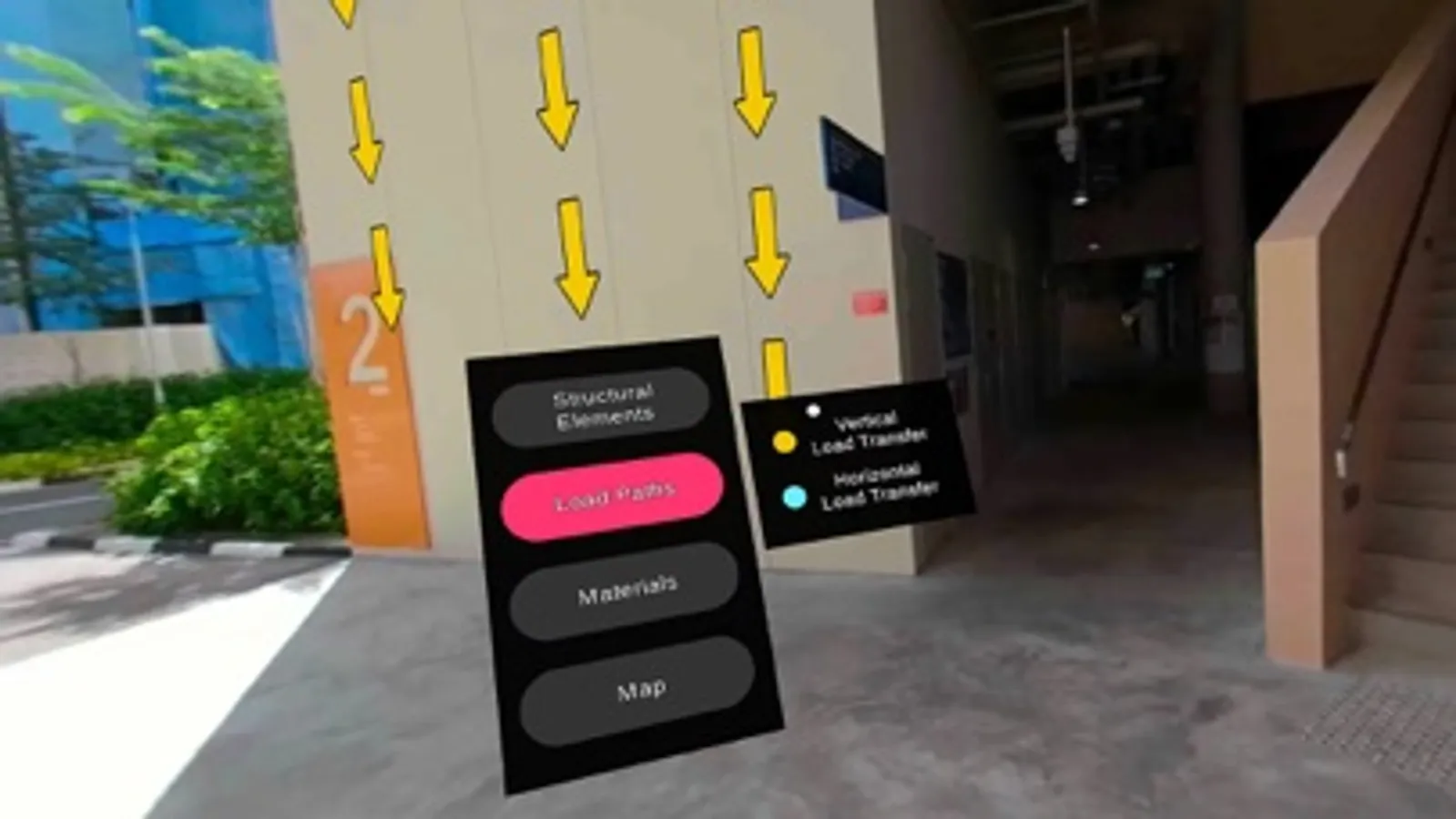 The aim of this project is to create a mobile application where virtual reality (VR) and augmented reality (AR) can be used as an innovative teaching pedagogy for users to identify different structural elements and their components in real life setting, to explain the difference between the different load types, to comprehend load transfer pathways in structural systems, to visualise deformation and failure modes of structural elements and systems under different loading conditions, and to identify the different materials used in different structures.